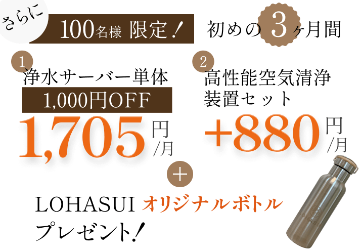 ウイルス除去型空気清浄装置をすでにお持ちの方など、浄水のみ必要な方のためのプランをご用意しております。
