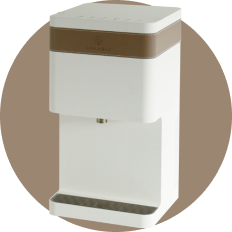 置き場所を選ばないコンパクトな浄水型ウォーターサーバー。机の上に置いて使うタイプのコンパクトな設計です。