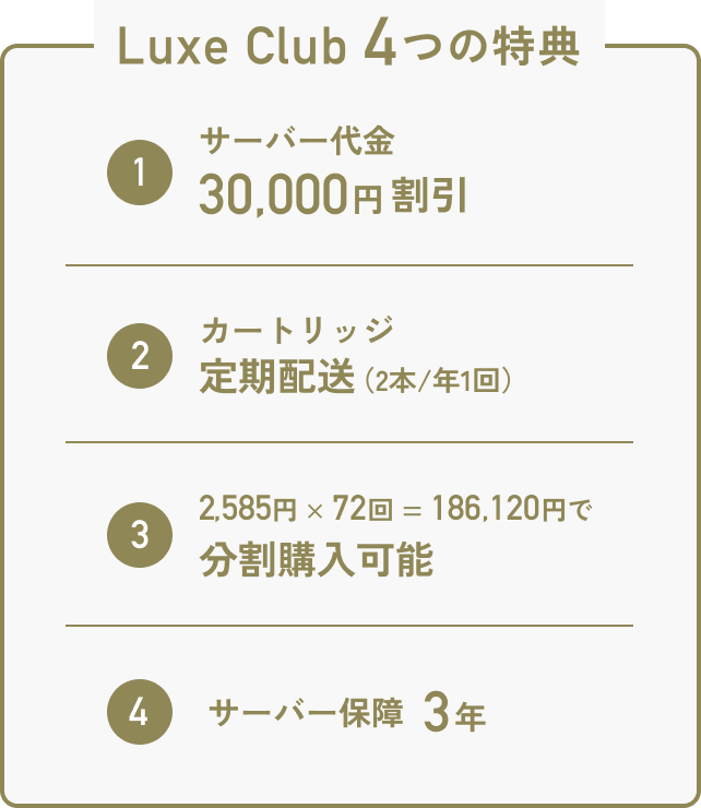 *3 JIS S3201対象17物質+6物質*4 ご利用状況により異なります。*5 定期配送にはLuxe Clubへの加入が必要です。